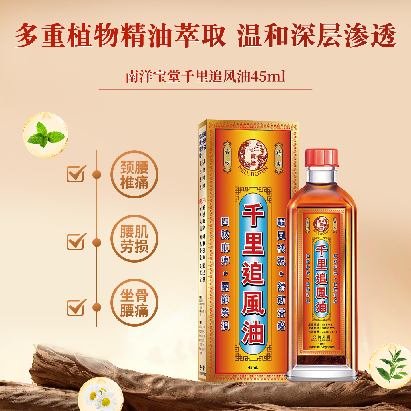 南洋宝堂 千里追风油 45ml