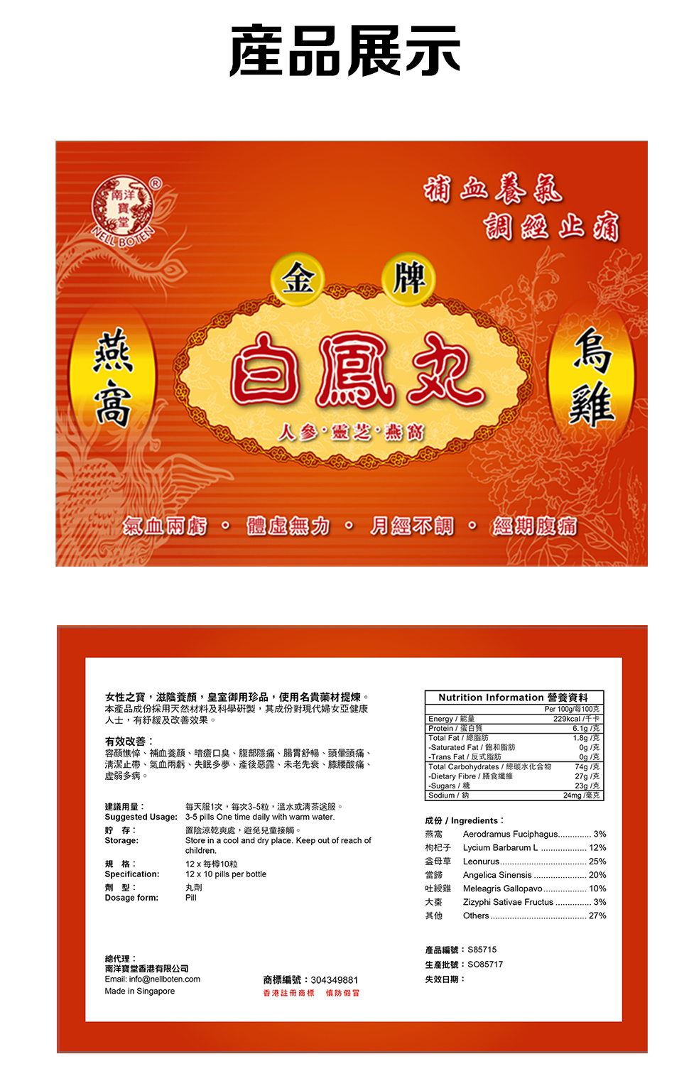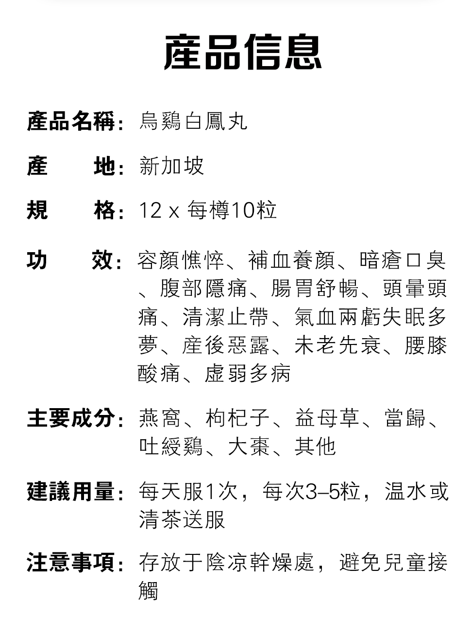 南洋宝堂 金牌乌鸡白凤丸 12*每樽10粒