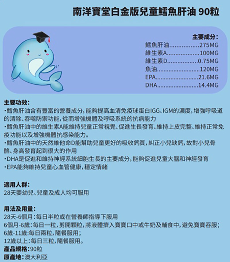 南洋宝堂 儿童鳕鱼鱼肝油90粒