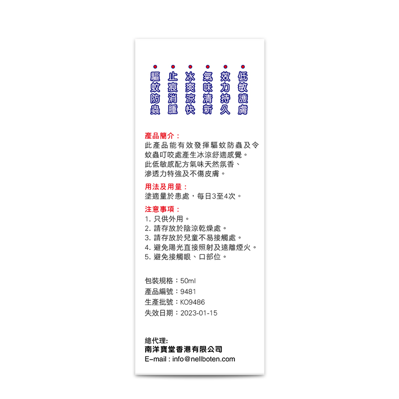 驱蚊防虫、止痕消肿、冰爽凉快 气味清新、效力久持、低敏护肤
