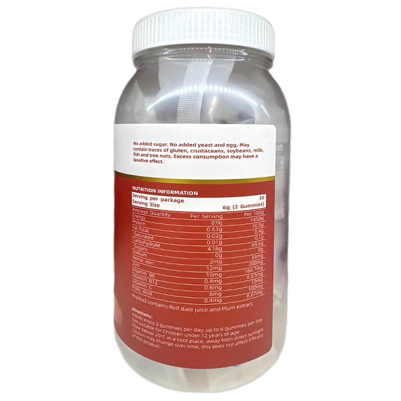 @游客 主要功效:南洋寶堂小熊富鐵多維軟糖含有 12 毫克最易吸收的血紅素鐵、鋅及人體所需的多種維生素。這款鐵糖果經過科學配方,有助於緩解疲勞、維持健康的免疫系统並改善膚色。富含天然梅子提取物,幫助緩解鐵質攝入時常見的便秘問题,溫和不刺激胃部。采用美味的棗味,使每日補鐵變成一種美味的享受。不添加糖、色素、人工調味劑。 用法及用量:日常保健一日2粒;女性生理期、孕期及產後補鐵及貧血人群一日3-4粒;每日最多不可超過6粒。 您好,中国大陆区域!以上介绍供您查阅。 回复