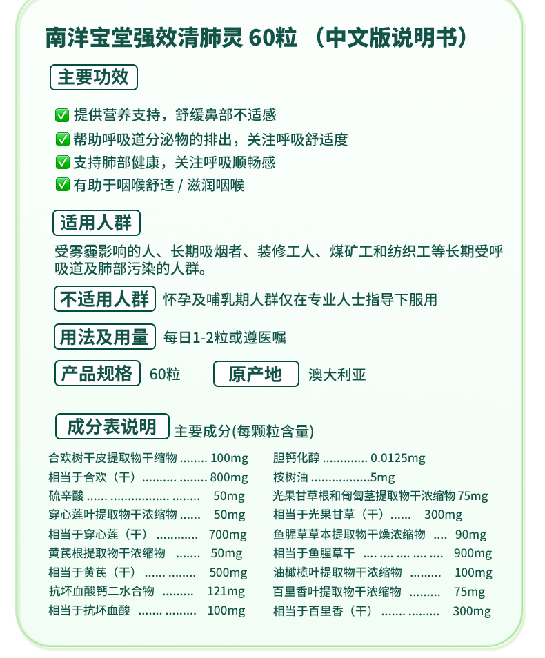 南洋宝堂 清肺灵60粒